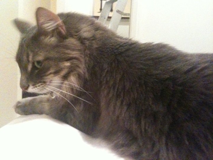 If you would like to reduce those ‘gross hairy cat poo’ looking things being thrown up all over your house, regular grooming is needed, such as bathing and blow-drying and combing as the cat is dried to remove that excess undercoat. In cases where a cat is susceptible to obstructions, a regular clip off and bath is your best prevention. I have a few cats that are kept short as this was their unfortunate Vet trip one day.