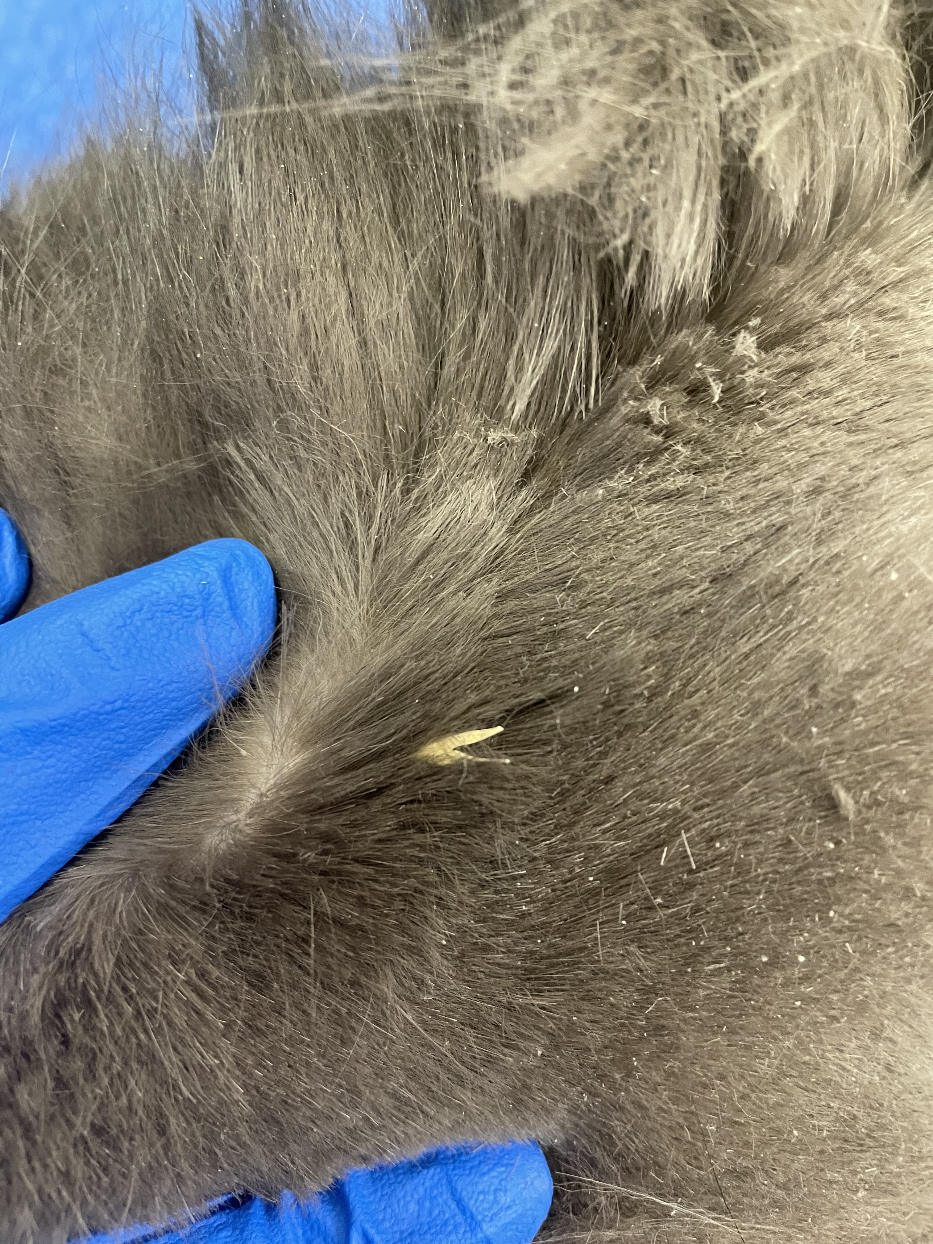 If a cat is found to have grass seeds embedded in the skin, do not clip the cat, unless by veterinary advice, as clipping the end of these seeds while embedded, can cause them to be lost under the skin, and in turn, cause infection and exploratory surgery to retrieve.