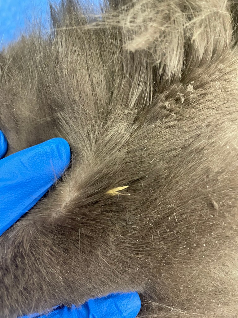 If on the surface of the skin, a granulated wound may be present with the seed still showing. If penetrated or naturally removed, a hole will be present. If evidence of a hard ‘trail’ under the skin, this needs to be seen ASAP to find the location of the seed, this may require exploratory surgery. If no ‘trail’, veterinary attention is still required, as antibiotics may be needed.